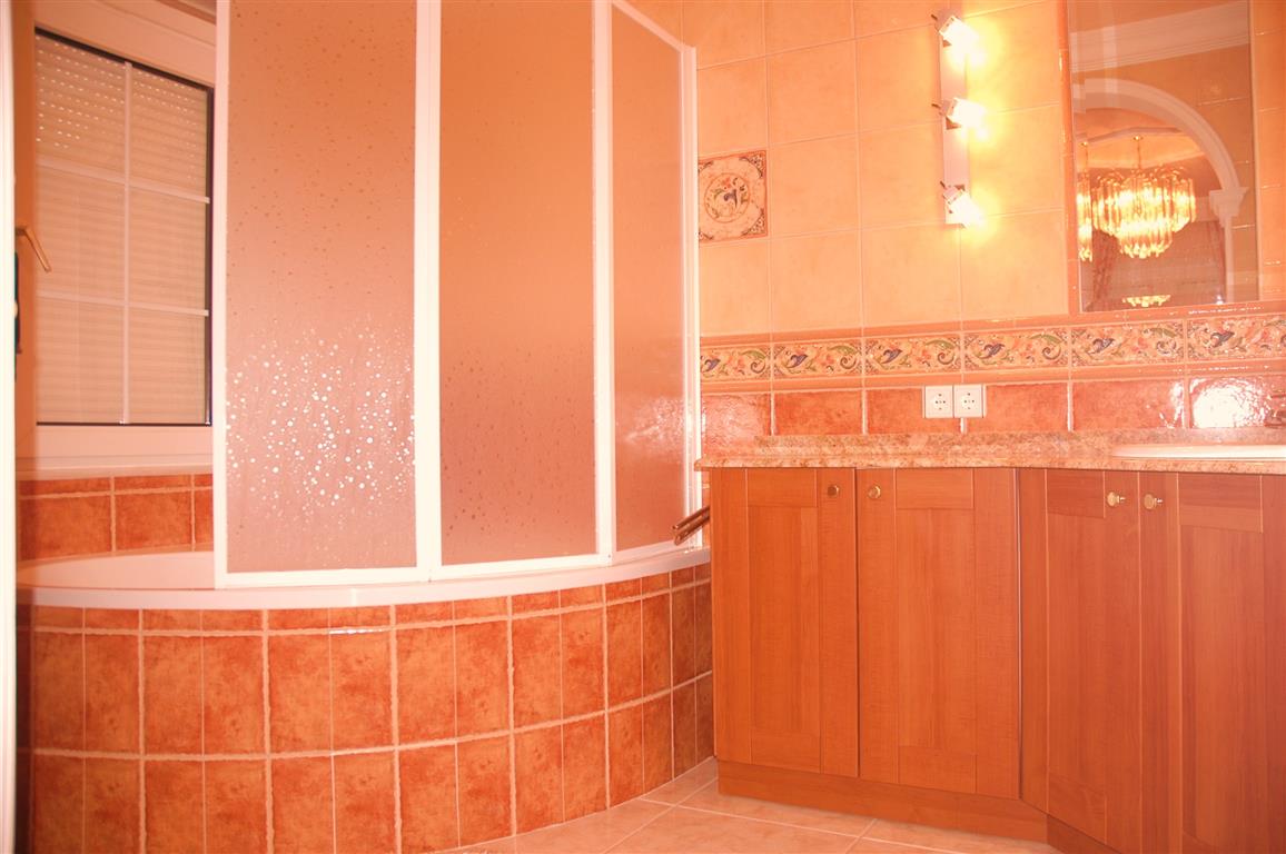 Lujosa Villa en Calpe – Esta prestigiosa villa de unos 460m² tiene una fantástica vista sobre el mar y está situado en una parcela de 3.800m² con plano de árboles maduros. Bien equipado con todas las comodidades hacen de esta propiedad una villa de lujo perfecto. Las puertas de entrada accionados eléctricos lleva en el parque con jardín con un estanque, una fuente y una glorieta. La puerta de entrada conduce a un amplio garaje para varios coches. La villa dispone de dos plantas, que se dividen de la siguiente manera: en la planta baja hay tres dormitorio y dos baños y una oficina. El dormitorio principal es muy espacioso y tiene un atractivo cuarto de baño con una gran bañera y jacuzzi. Una ducha y un inodoro con bidé están separados. Revestimientos de mármol italiano de altísima calidad. El salón se divide en varias secciones separadas por columnas y arcos. El salón real con sus sofás de cuero y chimenea. Por la noche la iluminación, así como un cielo estrellado invitan a un estado de ánimo positivo y hasta romántico. El área de TV también está generosamente equipada con sofás de cuero y acceso a un balcón donde se puede disfrutar de las fantásticas vistas sobre la ciudad de Calpe y el mar. La zona de comedor, también separada por arcos ofrece un montón de espacio para reuniones numerosas. En la misma planta se encuentra la cocina amplia y un trastero contiguo. Asimismo, un dormitorio atractivo, con cuarto de baño, que está dividido por un arco de medio punto que da un toque especial. Todas las habitaciones están equipadas con sistemas de sonido de alta calidad. El salón también se separa de la escalera, que conduce a una gran terraza. Desde aquí se puede disfrutar de una vista impresionante sobre Calpe, Peñon de Ifach . Aquí una habitación que actualmente está equipada como oficina.
